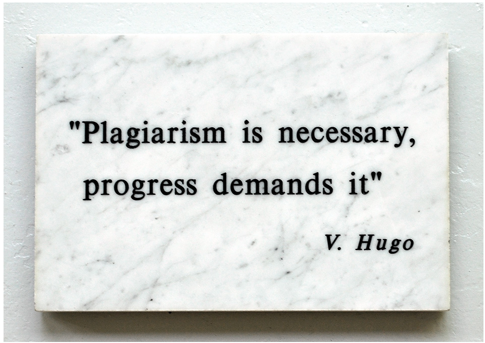Paolo Cirio’s website has a write-up about an installation from 2010 that deals with misquotations generated by a mock website designed randomly to misquote. All the quotes used in the installation are memorable ones specifically about plagiarism.